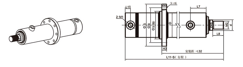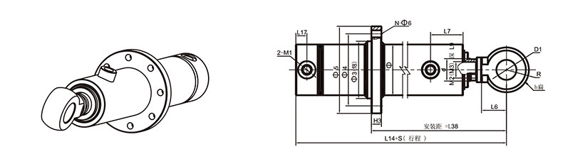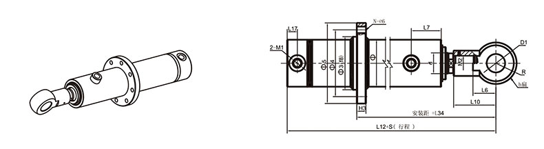 活塞桿端為內(nèi)螺紋桿頭耳環(huán)連接