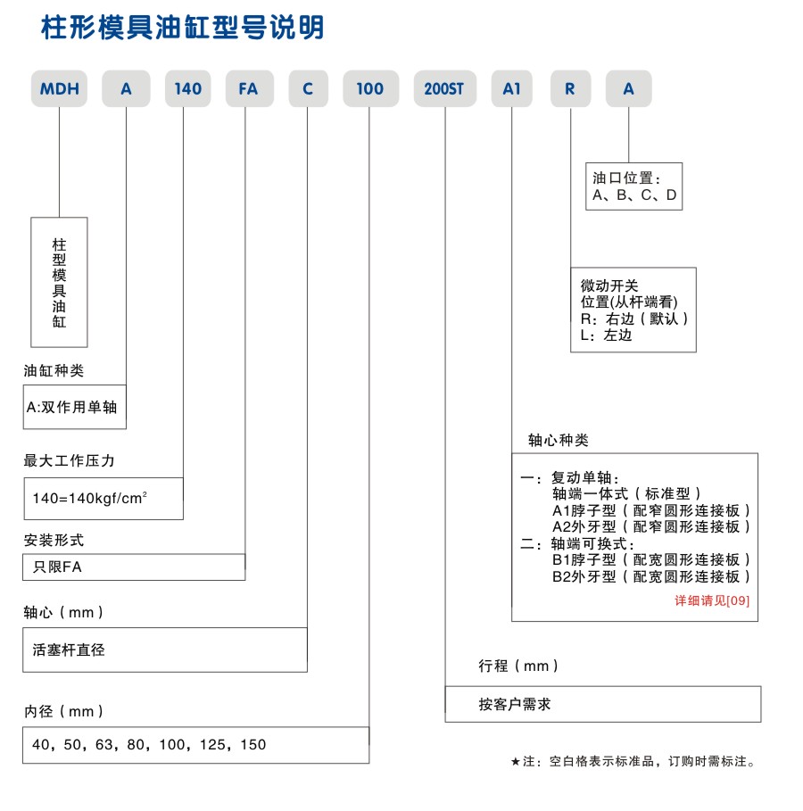 柱型模具油缸 外形安裝尺寸圖