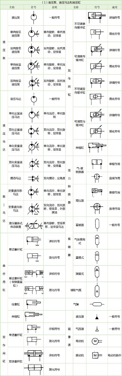 漢力達液壓常用液壓圖標符號大全包括液壓泵站、馬達、油缸、各種液壓閥、液壓配件等