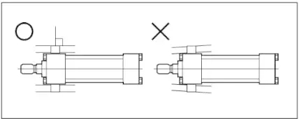移動中的物品的運(yùn)動方向必須和活塞桿的運(yùn)動軸心的方向一致。如果該軸心振動時,會產(chǎn)生襯套早期磨損,甚至缸筒和活塞桿拉缸現(xiàn)象。確認(rèn)該軸心方向不一致的方法是,在安裝油缸時,必須在活塞桿的出桿位置及進(jìn)桿位置上測定物品安裝部位的芯的偏離值,在對準(zhǔn)芯才將物品與油缸相連接。